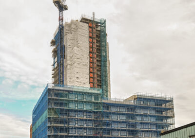 The scheme includes a prominent 27-storey tower, therefore requiring a carefully planned and well-coordinated approach to working at height.